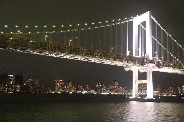 | ライトアップされたレインボーブリッジとビルの夜景。 綺麗ですが、人工的です。 |