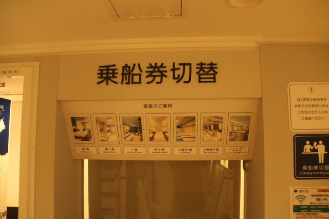 | 寝る前に船内をチェック。 10時間の船旅だけあって、船内レストランがあります。 おがさわら丸より小さいので、カフェはありません。 |