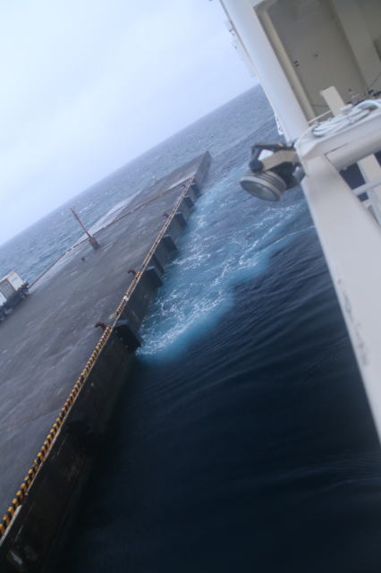 | さて、いよいよ出航の時間 タラップを話す作業が始まりました。 |