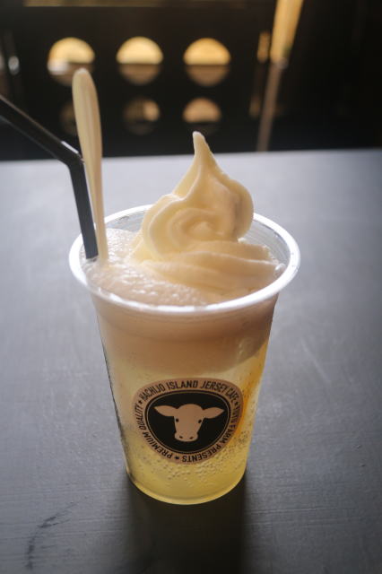 | ジャジー牛牧場の直営店?八丈島ジャジーカフェです。 島の特産品である島レモンを使ったレモンソーダに、もう一つの特産であるジャジー牛の濃いミルクから作ったフロート。 このフロートがめっちゃ濃い!そして美味い! でも、残念ながら持ち帰れないので、ここで味わって終わりです。 プリンやヨーグルトなどは通販もできるようです。 |