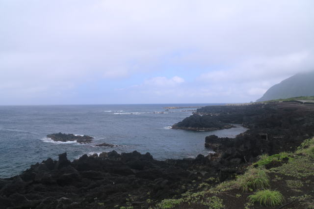 | 底土港と漁港の間を散歩してみました。 このあたりの海岸は、溶岩むき出しの荒れ地の様相を呈して居ました。 魚を釣る良いスポットのようで、看板が出てました。 |