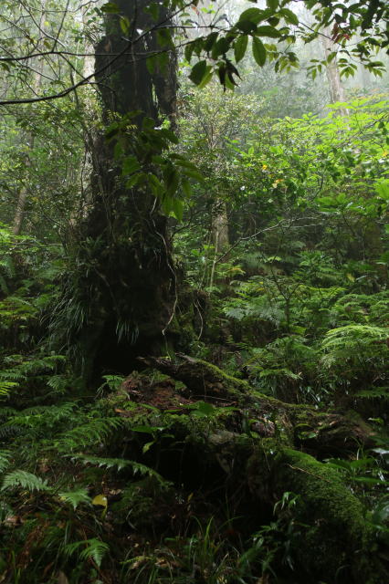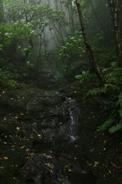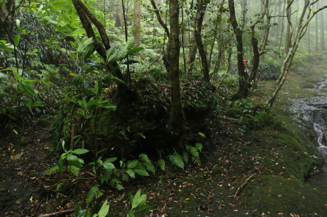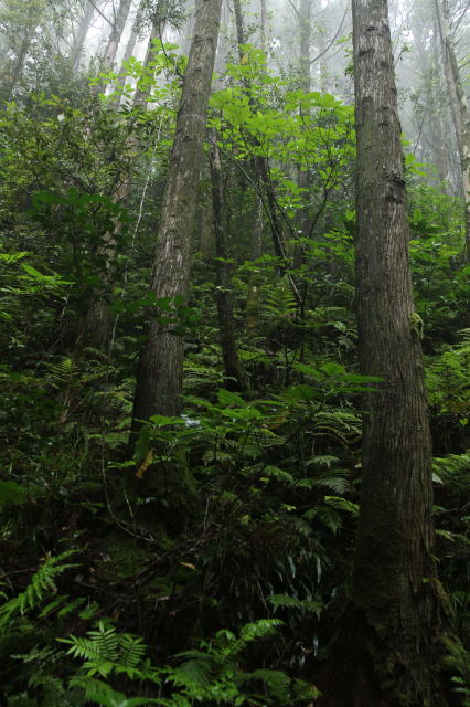 | 霧の中で幻想的な森のコース。 天気が良くない中で、ガイドさんが写真を撮るのには最高なコースを選択してくれました。 屋久島を彷彿とさせる感じがします。 |
