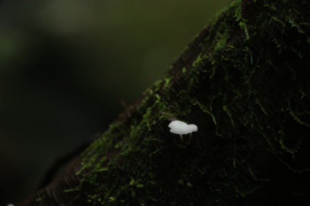 | 真っ白でとても小さいキノコ。 まるで高山植物の花のような可憐な感じがします。 |