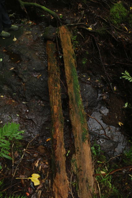 | 小川にかかる小さな橋。 でも気を付けないと、これはトラップ。 既に木が腐っているので、乗ったら折れて泥まみれになります。 |