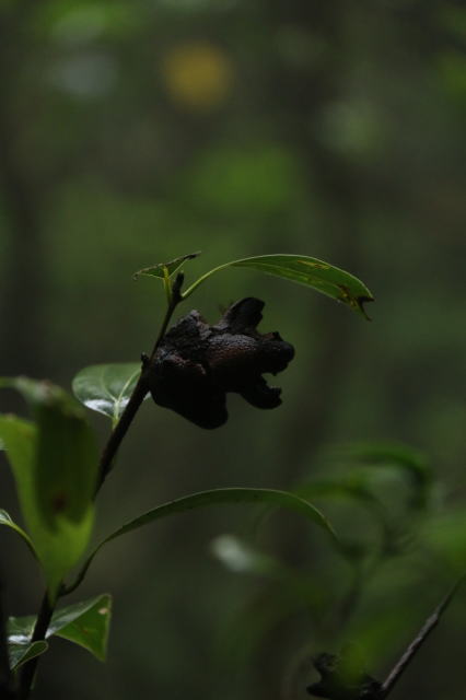 | 木の枝先に付いたこの黒い塊は、キノコなのだそう。 なぜかこの木にしかつかないそうで、形もだいぶいびつな感じです。 なんでこんな風になった? |