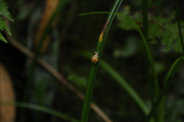 | 極小サイズのカタツムリ。かわいい〜 小さいものは在来種らしいです。 何かに付いて外来種が相当入り込んでいるようです。 |