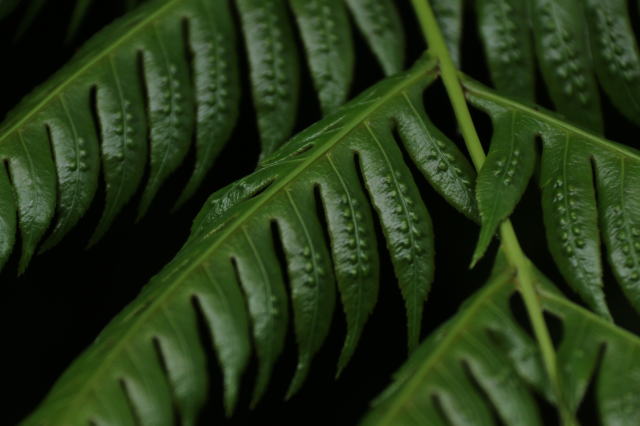 | シダは葉の中に胞子を作り出すようです。 成熟すると表に出てきて、羽で風に飛ばされるようです。 |