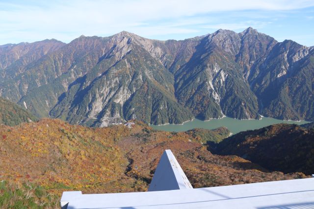 | 黒部湖の遊覧船から大観峰駅は見えていましたが、大観峰駅側から見るとこんな壮大な景色です。 あのダム作るの大変だったろうな。 |