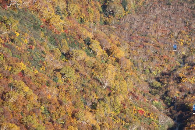 | ロープウェイからの紅葉の絶景です。このあたりの標高が一番紅葉しているんですかね。 |
