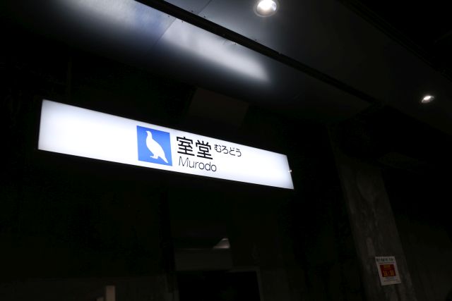 | むろど〜 むろど〜 終点です。 なんて声が聞こえてきそうな室堂です。雷鳥マークがなんとも言えません。 |