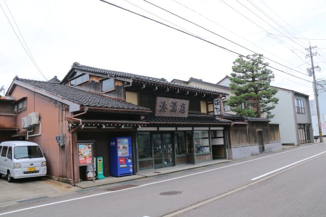 | まずは氷見の道の駅を目指しますが、バスを使わずに歩いてみることに。何やらレトロな酒屋さんです。 |