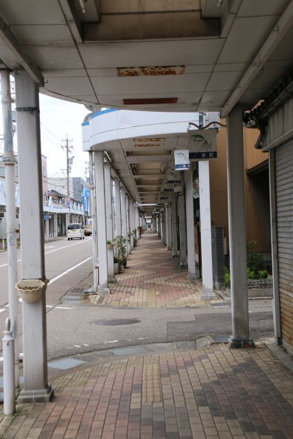 | 氷見の商店街はかなり規模が大きいのですが、やっぱりパッとしません。閉まっている店が多いのは平日だからであってほしいですね。 |