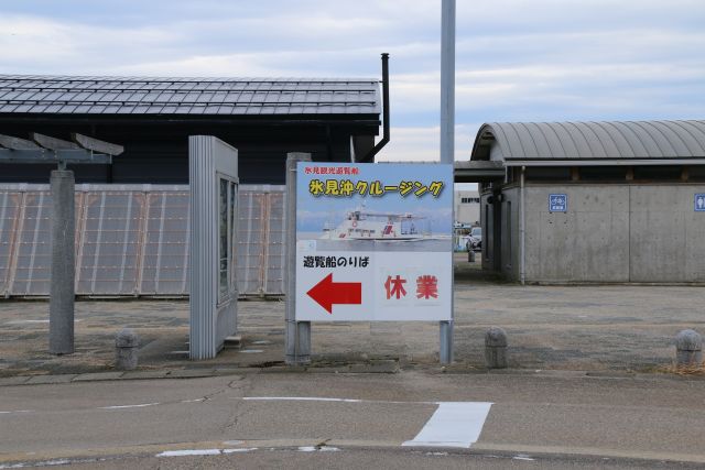 | 氷見沖のクルージング船があるようです。この日は海は凪でしたが、平日だからかやってませんでした。 |
