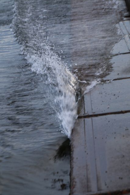 | 公園の先端で波が岸壁にぶつかって面白い感じに走ってきます。絶妙な状態なんでしょうけど面白いですね。 |