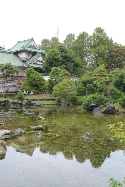 | 城址公園の池が綺麗な水鏡になっていました。 |
