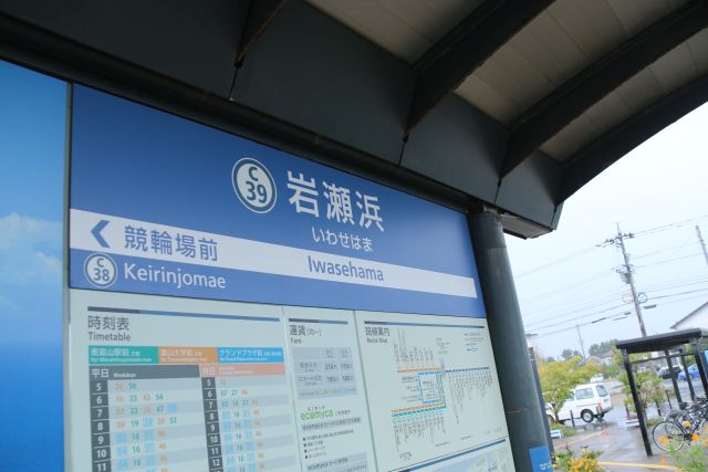 | 終点の岩瀬浜から二つ手前の東岩瀬で降ります。東岩瀬と岩瀬浜の間に目指す通りがあります。 |