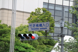 | 竹芝桟橋へは、浜松町駅の東京・上野寄りの改札を出て右へ。 この交差点を目指しましょう。 |