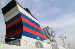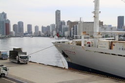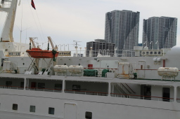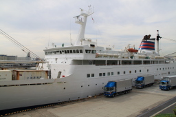 | かなり大きな船が停泊していました。 おが丸よりは高さがありそうです。 |