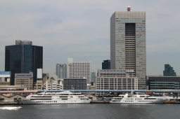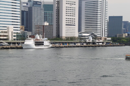 | 出港した竹芝桟橋です。 写っている船の右側あたりにおがさわら丸は停泊していました。 |