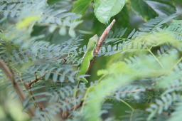 | この緑色のトカゲが、最悪な外来生物の一つ グリーンアノールです。 固有種、天然記念物の昆虫を食べてしまうそうです。 |