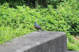 | 鳥を見つけました。かなりカラフルできれいでした。 イソヒヨドリのオスのようです。 |