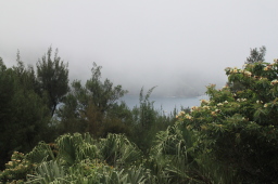 | ウェザーステーション付近から二見湾側を撮ってみました。 ますますガスが濃くなってしまっています。 |