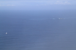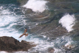 | ウェザーステーションの真下の海に何かが飛んでいました。 羽を広げたまま、羽ばたくのではなく風に乗っています。 この飛び方は猛禽類です。 ということは、これは天然記念物のオガサワラノスリではないか と思われます。 |