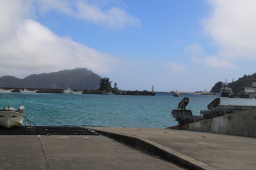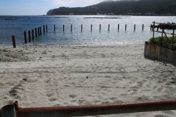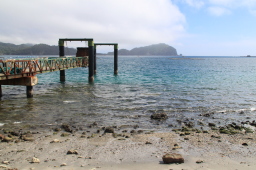 | 海洋センターの手前の浜です。 昔使われていたと思われる桟橋があります。 |