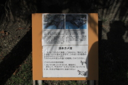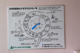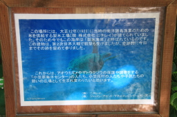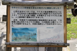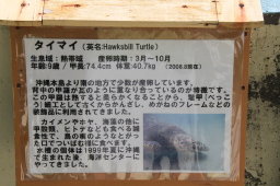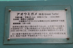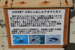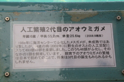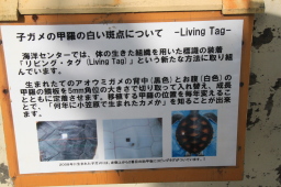 | 子ガメをここで大きくしてから放流することで生存率を高める ことが説明されています。 でも、結果が出るのは20〜30年後だそうです。 |