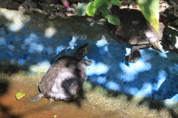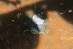 | カメも暑いのか、水が落ちてくる真下に陣取って動こうとしません。 | |