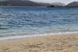 | きれいな浜ですが、白いのは砂ではありません。 | |