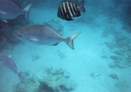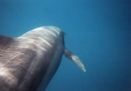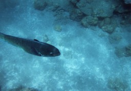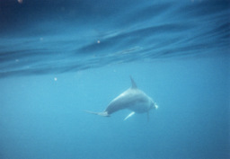 残念ながら水が濁っていて、視界が良くありませんでした。 あまり遠いと見えないので、特に水に入った直後などは この写真のようにいきなり真下を通過するなんてことがよくありました。 |