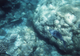 兄島の海中公園です。 かなり魚が多かったです。 実際にはもっとカラフルだったのですが、この写真では 青みがかってしまっています。 |