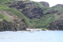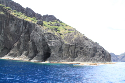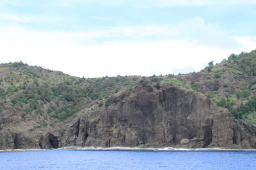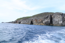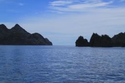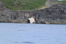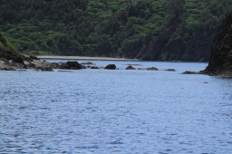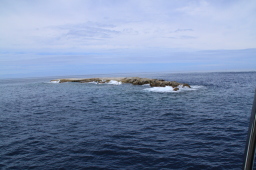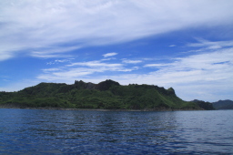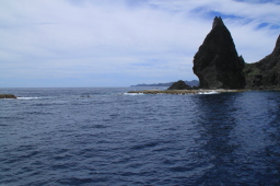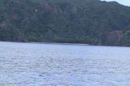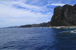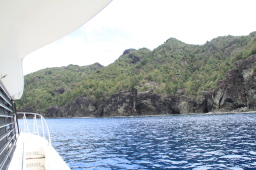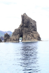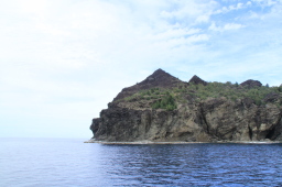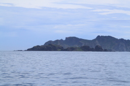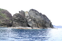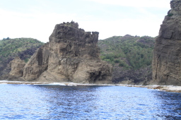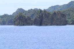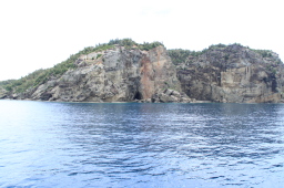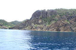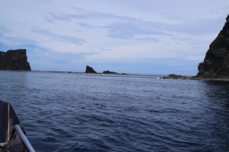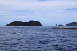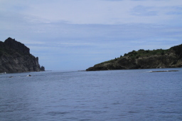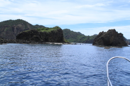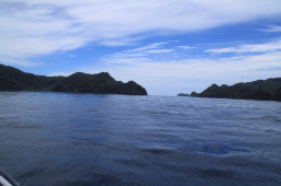 | 兄島と弟島の間にある、弟島瀬戸です。 途中浅くなっている所があり、大きな船は通過するのが 難しいそうです。 船長さん曰く、この船では緊急事態でない限り通ることは しないとのことでした。 |