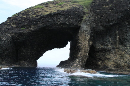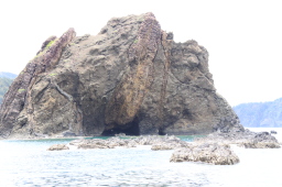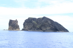 | 一本立ってるのは、昔の電信柱の跡だそうです。 シロアリに負けずに残った数少ないもののようです。 弟島だったか兄島だったか忘れてしまいました。 今では無人島です。 |