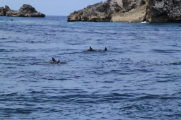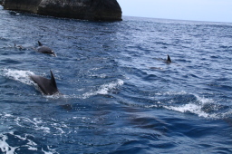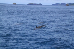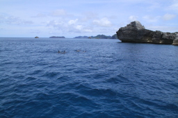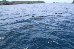 6月18日のツアーでは、南島上陸後に50頭くらいはいる大きなイルカの群れに遭遇しました。