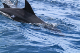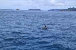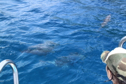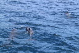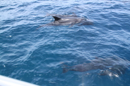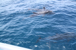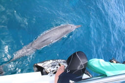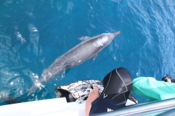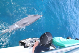 | 船の舳先に付きました。 船が作る引き波に乗って遊んだりするそうです。 |