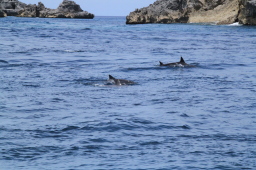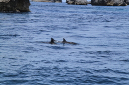 | イルカです。 浮かんだり沈んだりしながら泳いでいます。 |