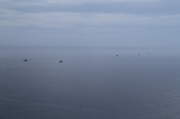 | 大きな汽笛が聞こえたのちに、最後の1隻が見えてきました。 この船はウェザーステーションの前で光信号を送ってくれました。 手を振るすべての人に挨拶しているようでした。 |
