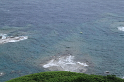 | 真下をシーカヤックが通っています。 あまり急ぐと大きな船の引き波に巻き込まれそうです。 |