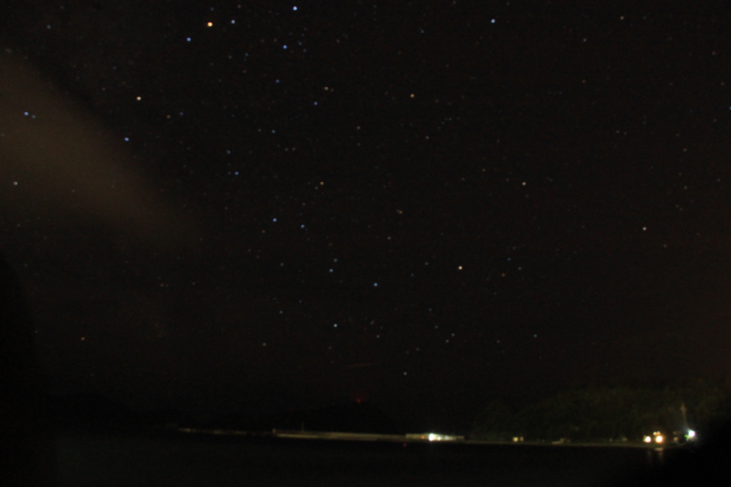 小笠原の夜空 このページでは、晴れた夜に満点の星空を撮影した写真を紹介します。 実際には、写真などではとても表現できないような満天の星空でした。 下の写真には「さそり座」がばっちり写っています。探してみてください。 ※写真はオリジナルサイズのままではサイズが大きすぎて挙げられないので縮小してあります。