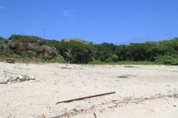 | 上陸ポイントの浜です。 船の残骸があったりしました。 この浜でまずは昼食をとり、その後大山へのハイキングです。 |
