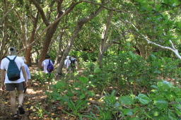 | 浜の横に林があります。 そこからハイキングスタートです。 |