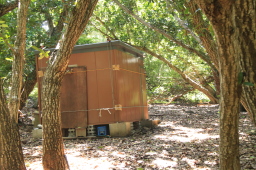 | 無人島のはずなのに小屋が… 実はアホウドリ保護・繁殖の活動をしていた人が使っていた 小屋なのです。 ケータ島のアホウドリは巣立ってしまったので、 今は使用されていませんでした。 |