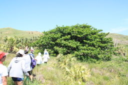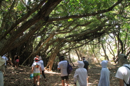 | 屋根のような大きな木が見えてきました。 人の大きさと比べればどれだけ大きいかがわかるかと 思います。 |