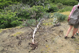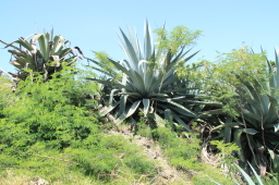 | リュウゼツランです。 父島にもありました。 数十年に一度、幹のようなものが高く伸びてきて、 花をつけます。 花をつけた後は枯れてしまいます。 |