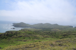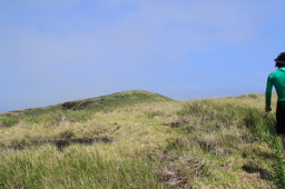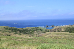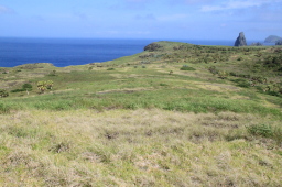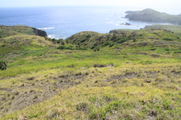 | なだらかな草原が続いています。 風通しが非常にいいです。 飛び立つのが下手なアホウドリが好んで生息していたのも わかる気がします。 |