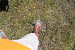 | 自分の足を写したかったのではありません。 踏んでいる小さな石が、山頂なのです。 |