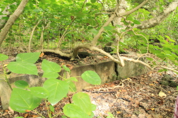 | 最初に入った林の中です。 昔、人が住んでいた時に使用していた生活の跡が 残っています。 |