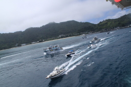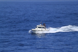 | 最後の最後は沿岸警備艇でした。 お仕事中でありますが、「またこいよ〜」って 叫んでくれていました。 |